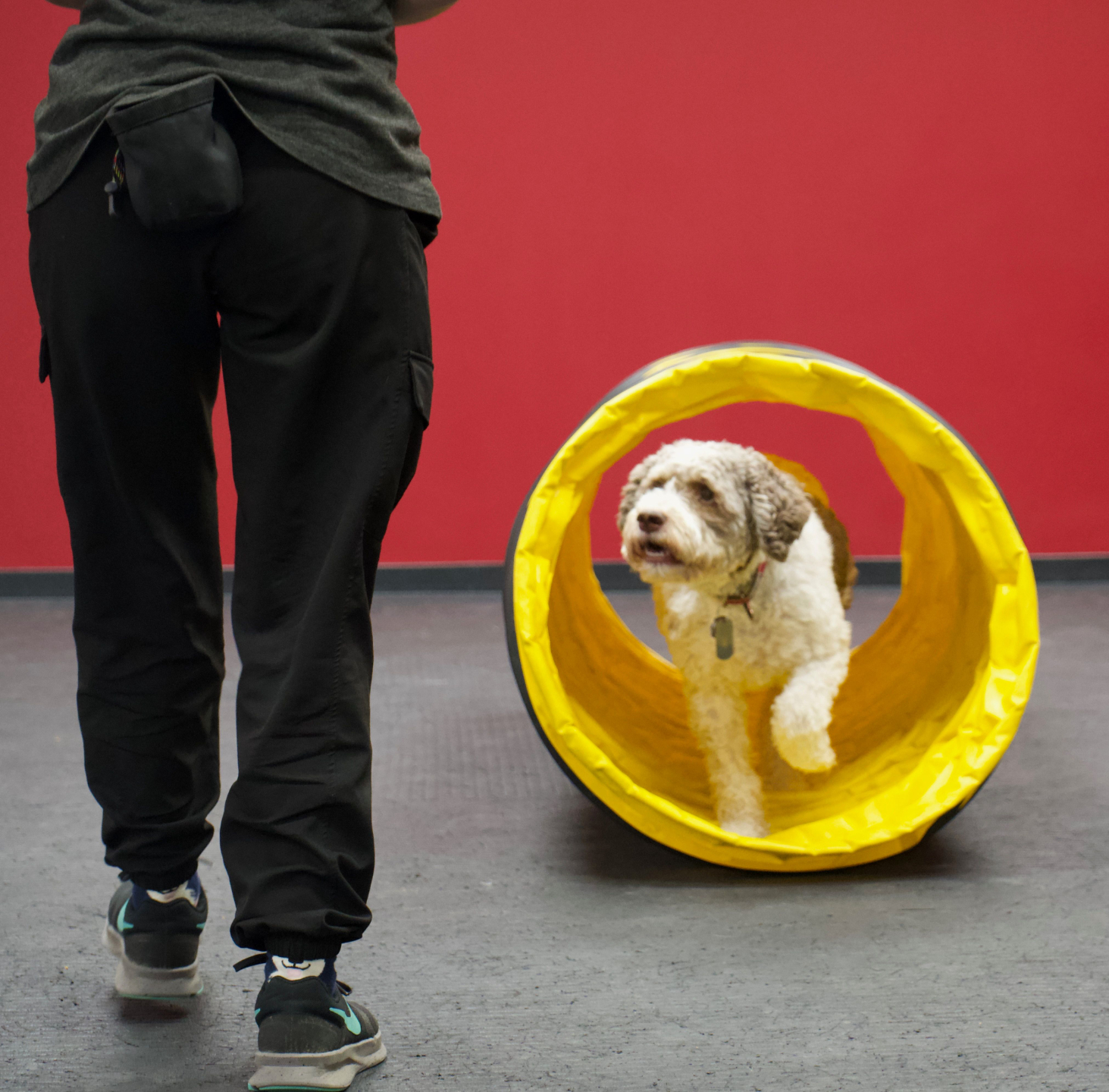 Our goal is to improve the dog’s obedience and ability to remain calm near other dogs. The program really works well in conjunction with our training classes.